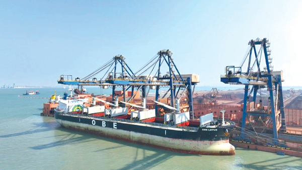 本报讯 1月19日,巴巴多斯籍“莲花”轮顺利完成5.38万吨利比里亚铁矿粉卸载作业,从莆田东吴港区罗屿作业区缓缓驶离。这艘从非洲利比里亚布坎南港始发、经新加坡中转的货轮驶抵,标志着莆田口岸中非新航线成功实现首航,为东南大港新年“开门红”注入强劲动能。