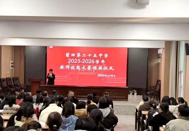 2026年1月19日下午,莆田第二十五中学举行了2025-2026学年青年教师教学技能大赛颁奖仪式。