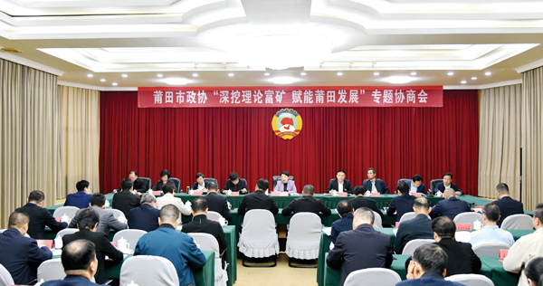 习近平总书记在福建工作期间,曾19次亲临莆田视察指导,从木兰溪治理的宏伟擘画,到妈祖文化的深情嘱托;从“三农”工作的殷切关怀,到民营经济的悉心指引,为莆田留下了思想“富矿”、精神“富矿”、实践“富矿”。如何让“富矿”释放最大能量,转化为高质量发展的“金钥匙”?12月24日,莆田市政协“深挖‘理论富矿’ 赋能莆田发展”专题协商会召开。市政协主席沈萌芽主持会议,副市长郭国成、市政协各位副主席、部分市政协委员、市直相关部门负责人共商理论赋能莆田发展的实践路径。