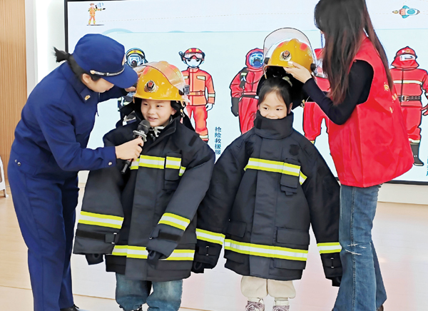 活动以孩子们春节期间燃放“仙女棒、日景彩烟棒”等冷烟花注意事项为切入点,普及了消防安全常识、进行了“小小消防员”体验。“这衣服好重呀!”“帽子真神气!”孩子们在志愿者与消防员的协助下,轮流尝试穿戴消防头盔和战斗服、抢险救援服。厚重的装备让孩子们切身感受到了消防员工作的辛苦与不易。一位成功“变身”的小男孩挺起胸膛,骄傲地说:“我长大了也要当消防员”。活动最后,消防员和志愿者们还化身“手工老师”,与孩子们制作“迷你消防头盔”“烟花”“迷你灭火器”等小手件,用巧手和创意构筑心中的“安全防线”。(时报记者 林锦堂 通讯员 郑明花 吴攸)