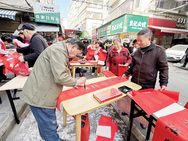 本报讯 农历马年将近,1月29日上午,一场充满年味的“迎新春·送祝福”义务写春联活动在筱塘农贸市场举行,本次活动由凤凰山街道新时代文明实践所、筱塘社区新时代文明实践站、筱塘社区党委、居委会以及心海社工服务中心联合主办,活动以“翰墨飘香迎新春 书写祝福送万家”为主题。