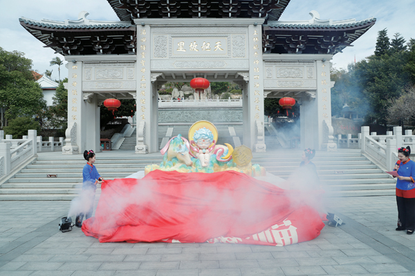 2月1日,湄洲妈祖祖庙马年文旅IP系列艺术装置首批作品正式与公众见面,“诞降”与“开悟”两大主题装置分别亮相湄洲岛天妃故里遗址公园东大门、妈祖源流博物馆广场。此次活动以“全到莆田过大年·都来湄洲转五福”为主题,拉开了马年文旅盛宴的序幕。