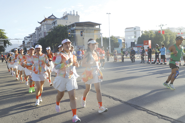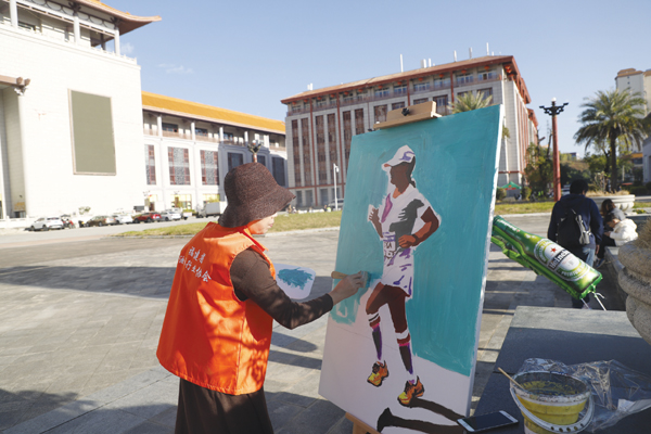 作为赛事灵魂,深厚的仙作红木文化元素贯穿全程。主会场一座高达5米的“仙作”交椅威严矗立,寓意“稳坐头把交椅,勇夺赛事桂冠”,成为最受欢迎的合影地标。赛道沿途设有“仙马”计时打卡点与仙作文化展,10位画家更在现场进行即兴创作,共同构筑了一场流动的艺术盛宴。作为仙游形象吉祥物的“鲤状元”首次灵动亮相,与20位身着仙游非遗“青黛”服饰的“小仙女”一同,以最美笑容迎接四方跑友,将现场氛围推向高潮。