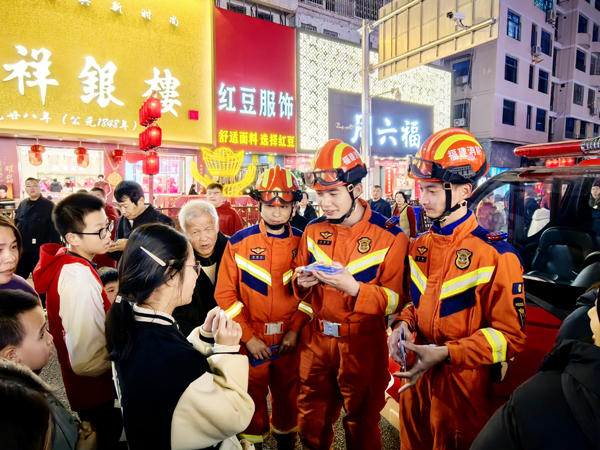 本报讯 “过年何必去远方?莆田正是好地方!”莆阳开春,莆田以 “莆阳开春”为名,备好最美风景、最醇年味与最优保障,向全球游客发出“全到莆田过大年”的诚挚邀约。春节前夕,作为活动核心路段的文献路步行街人流如织,莆田市荔城区消防救援局联合火焰蓝跑团志愿者,开展 “平安迎新春?消防伴你行” 主题活动,通过互动游戏和现场讲解,向市民游客普及消防安全知识。
