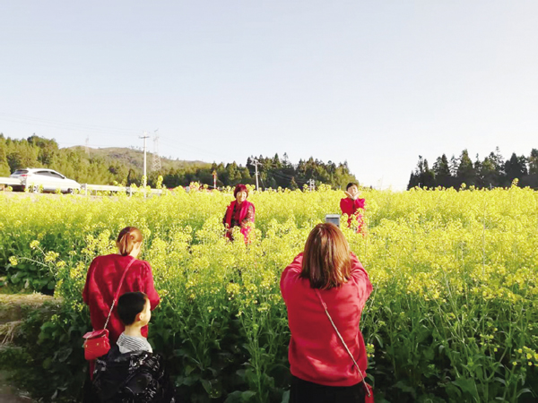“小油菜”变成了“大产业”。依托溪边、南兴、朗桥、天马等50多个村连片盛开的油菜花海,在长达一个半月的花期里,全县共精心打造了50多个油菜花观赏长廊旅游点,让金灿灿的花海与蓝天、远山、乡村农舍相映成趣,吸引了大量周边游客前来游玩。同时,随着连片油菜花海的声名远播,还巧妙地将周边农户的农产品等本地资源与休闲度假等功能有机融合,带火了村里的农家乐和土特产销售,村民的钱袋子更鼓了,走出了一条“以花为媒、以旅促农”的多元化发展新路。