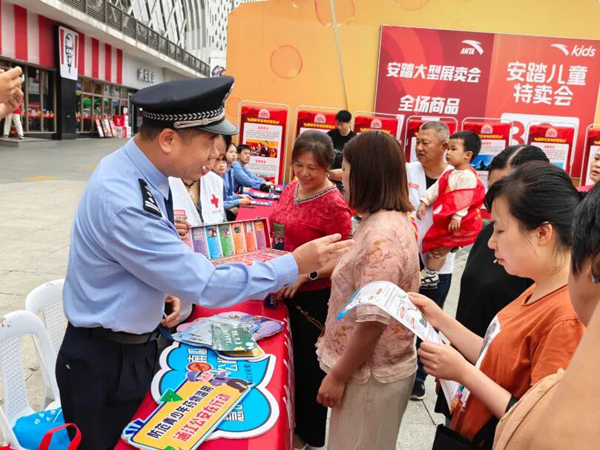 在水韵城天虹广场,民警设立宣防站点摆放展板、悬挂横幅,用通俗易懂的语言,向过往群众讲解如何识别间谍行为、如何举报危害国家安全线索,面对面解答群众疑问;并结合反恐、禁毒、反诈宣传,提高群众防范安全风险的能力。