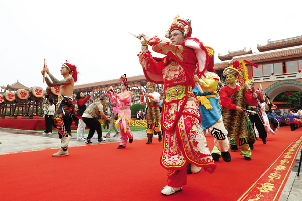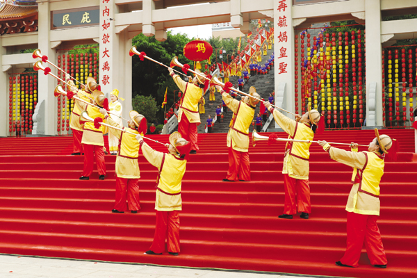 “擂鼓迎宾,恭迎天下妈祖回娘家。”上午9时30分,随着一声铜锣声落下,来自新加坡、越南、马来西亚等“21世纪海上丝绸之路”共建国家和地区以及国内部分省市妈祖文化机构、妈祖宫庙的代表与妈祖敬仰者依次入场,参加丙午年“天下妈祖回娘家”活动。