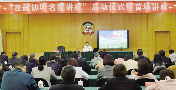 2022年4月19日,市政协“在政协听名家讲座”启动仪式暨首场讲座举行。省政协文化文史和学习委员会副主任李韧受邀作《新时代新思想与统一战线》专题讲座。