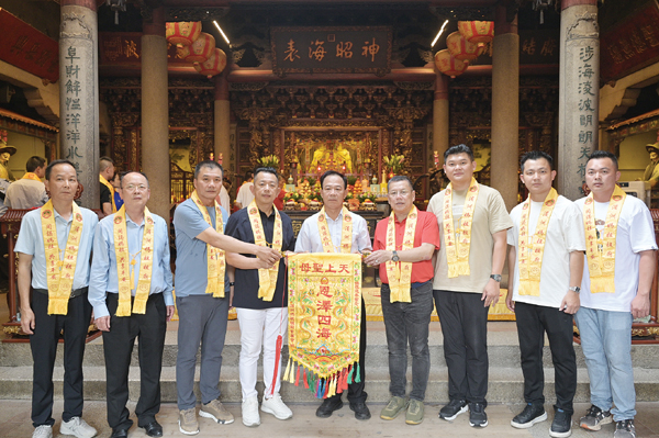 赠送交流纪念品 抵达祖庙 座谈会 巴淡岛海神妈祖庙 7月8日,印尼巴淡岛海神妈祖庙一行赴湄洲妈祖祖庙参访进香。湄洲妈祖祖庙董事会董事长林金赞陪同印尼巴淡岛海神妈祖庙理事长吴清良及陈春华、孙锦明、张致豪、周永吉、陈佳才、陈财源等人向妈祖行三献礼。会上,林金赞对印…