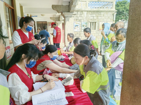 本报讯 6月24日下午,莆田学院附属医院湄洲岛分院家庭医生团队走进资源循环集团,与30名环卫工人签下家庭医生服务协议,并为他们送上装有创可贴、体温计等应急医疗用品的“健康包”,为长期奋战在户外一线的“城市美容师”筑起一道坚实的健康防线。活动现场,医生们为环卫工作…
