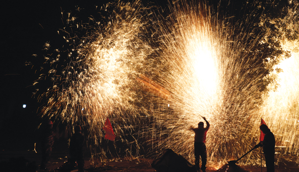 本报讯 火树银花幻莫测,凌虚掷地纷骊珠。从农历蛇年的正月初三至二月初一,在绶溪公园卵石沙滩上,十五场的省级非遗技艺“打铁花”民俗活动精彩上演。夜幕降临,上千摄氏度的铁水在表演者手中幻出多种姿态,像流星,像银河,流光溢彩的“打铁花”表演,吸引了众多市民以及全国…