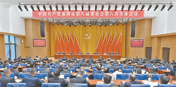 全会由市委常委会主持 市委书记付朝阳讲话全会听取和讨论了付朝阳受市委常委会委托作的工作报告,审议通过了《中共莆田市委关于深入学习贯彻习近平总书记在福建考察时的重要讲话精神,奋勇争先推进中国式现代化莆田实践的决定》 12月9日,市委八届八次全会召开。图为全会会场…
