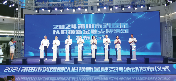本报讯 为进一步贯彻落实国家、省、市关于加力支持消费品以旧换新相关工作部署,推动金融赋能支持消费品以旧换新工作,11月11日下午,由莆田市商务局、莆田市工商业联合会(总商会)、涵江区人民政府、莆田农商银行主办的“利民兴莆焕新消费”莆田市消费品以旧换新金融支持活动…