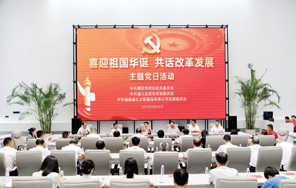 本报讯 在喜迎中华人民共和国成立75周年、喜庆中国人民政治协商会议成立75周年之际,9月24日,市政协机关和涵江区政协机关、福建省红太阳精品有限公司联合举行“喜迎祖国华诞 共话改革发展”主题党日活动。市政协党组书记、主席沈萌芽,党组成员、副主席林玉瑞、张志宏,党组成…