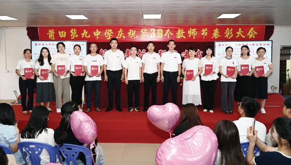 本报讯 玉壶存冰心,朱笔写师魂。为表彰先进教师和典型事迹,激励广大教职工守教育报国初心、担筑梦育人使命,推动学校新一轮跨越发展,9月9日下午,莆田九中全体教职员工欢聚一堂,举行庆祝第39个教师节表彰大会。会议期间,举行了新入职教师入职宣誓仪式,并为新入职的教师颁…
